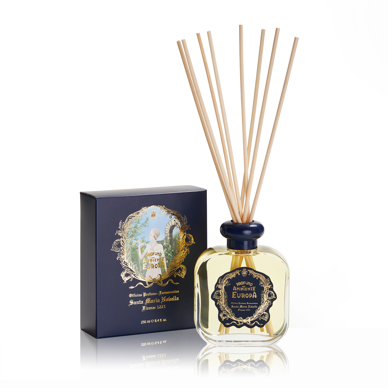Светлые тона и золотые вышивки сопровождают нас в ольфакторном путешествии на «старый» континент. Бергамот и сладкий апельсин, розы и фиалки смешиваются с древесными и мшистыми ароматами. Европа – это женщина с элегантным профилем и утонченной внешностью. Ее аромат раскрывает глубинную сущность.