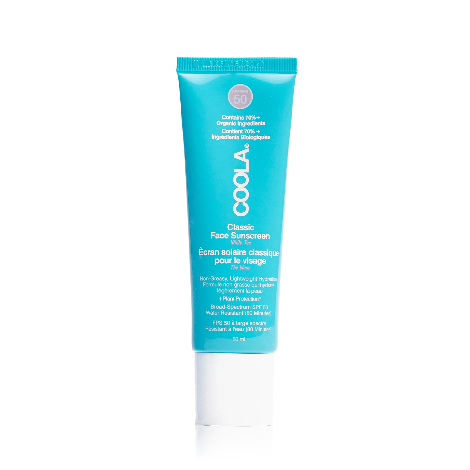 Солнцезащитный лосьон с SPF 50 от Coola с ароматом белого чая, устойчивый к воздействию воды и пота в течение 80 минут для активных моментов на солнце. Легкая формула, на 70% состоящая из органических компонентов, богатых антиоксидантами и питательными веществами, ухаживает за кожей, помимо эффективной защиты от солнечных лучей. Подходит даже для самых чувствительных типов кожи.